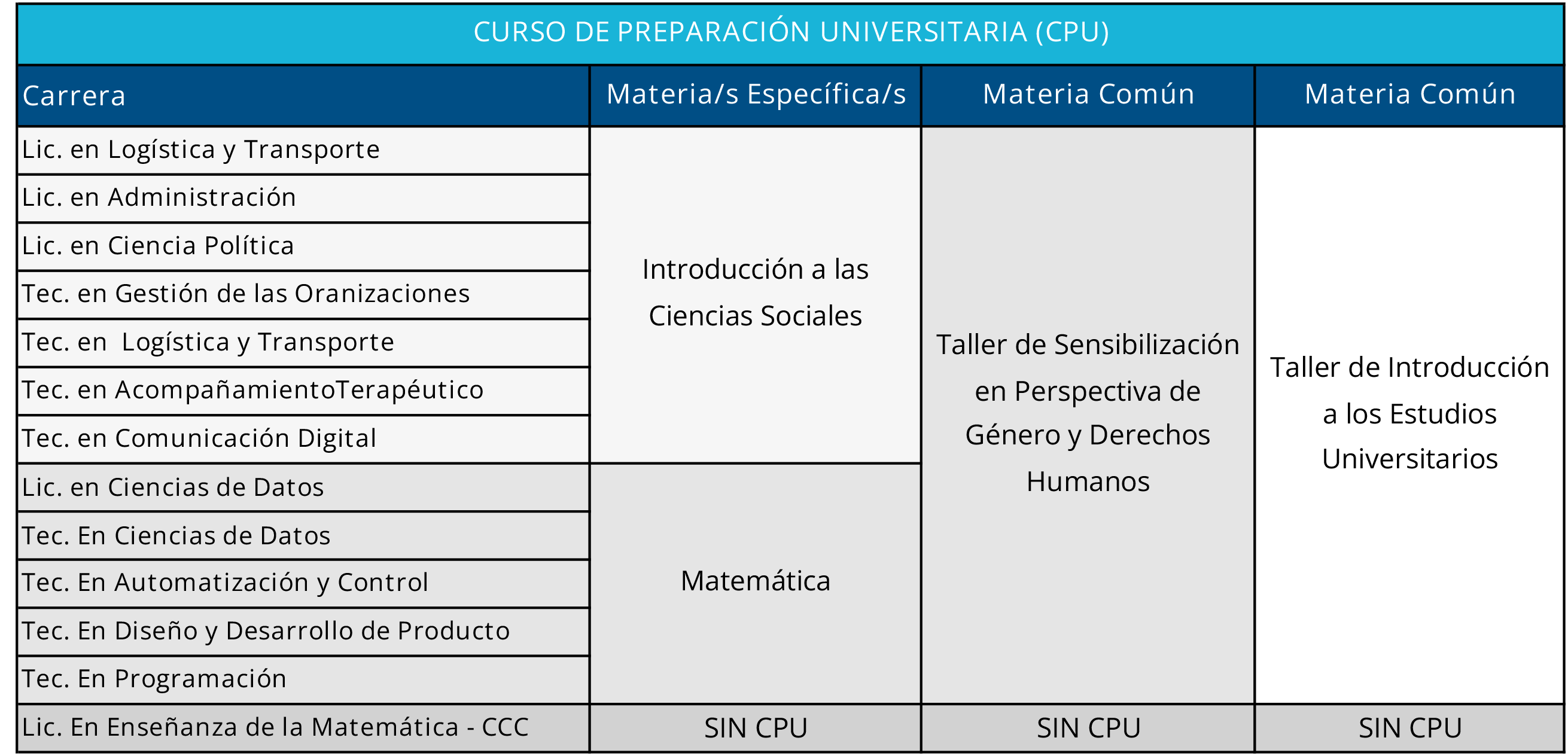 Información sobre el Curso de Preparación Universitaria (CPU) – Otras Carreras