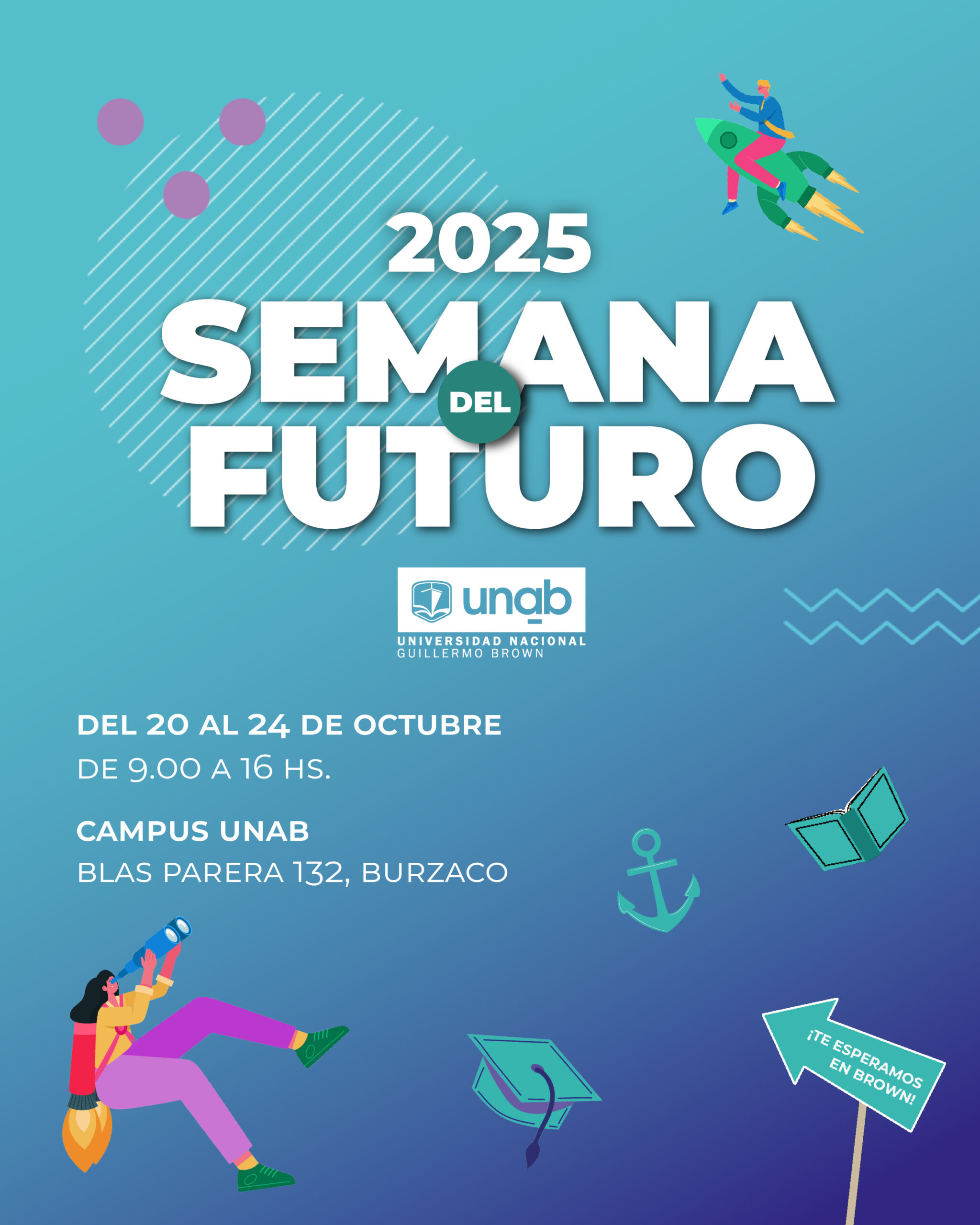 La Universidad Nacional Guillermo Brown (UNaB) invita a las instituciones educativas y sociales de Almirante Brown y los estudiantes del último año de la escuela secundaria a participar de la segunda edición de la Semana del Futuro, una experiencia pensada para acercar a los jóvenes al mundo universitario, la ciencia y la tecnología.